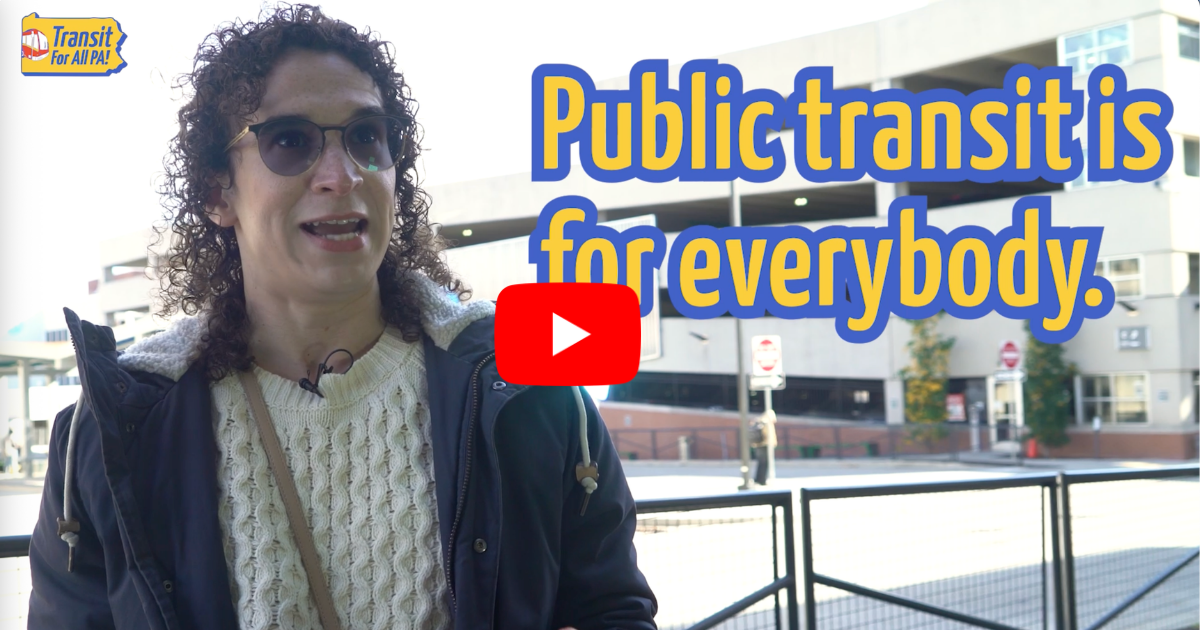 Transit riders across PA are telling their stories & Calling for expanded transit funding To tell your story, email info@transitforallpa.org today! https://youtube.com/playlist?list=PL3URwoX8g3w31us4zOp3_sDj7FdbbSe1w&si=wsFDRjs2CLR1RQmE Kearasten in Lancaster https://www.youtube.com/watch?v=au3irQmkNyI&list=PL3URwoX8g3w31us4zOp3_sDj7FdbbSe1w&index=3 Julianna in Allentown https://www.youtube.com/watch?v=9KvNnOSq-MU&list=PL3URwoX8g3w31us4zOp3_sDj7FdbbSe1w&index=3 Bob in Harrisburg...